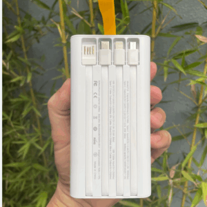 Trên pin dự phòng tích hợp 3 cổng sạc và 4 cáp sạc bao gồm: 2 cổng USB, 1 cổng, 1 cáp typeC, 1 cáp LN, 1 cáp microUSB, 1 cáp USB. Trong đó cổng typeC vừa có thể hỗ trợ sạc vào lẫn sạc ra lên đến 20W, 1 cổng USB 1 và 1 cáp typeC hỗ trợ sạc ra 22.5W rút ngắn thời gian sạc đầy giúp đảm bảo cung cấp năng lượng cho thiết bị của bạn một cách tiện lợi nhất.